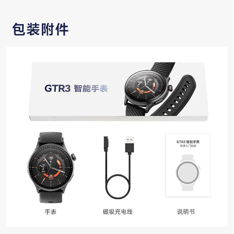 AMO圆屏智能手表GTR3运动手表3ATM防水心率监测手环旗舰高配