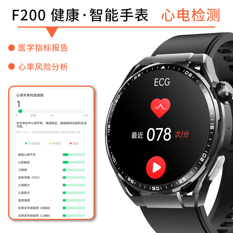 小狮F200运动手表ECG心电血压监测SOS科学睡眠无创血糖AI智能手表