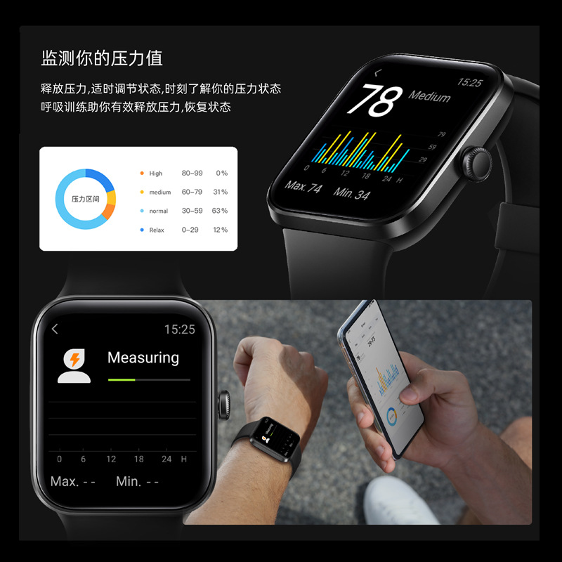 小狮ID207mini全触屏红外血压心电血氧智能手表压力监测呼吸运动手表